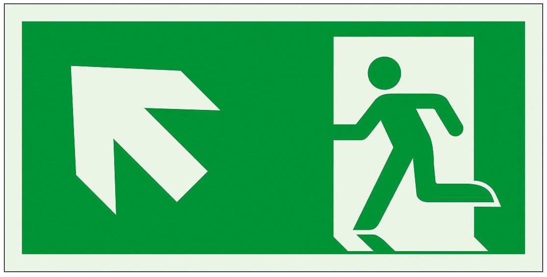 Jälkivalaisevat poistumisopasteet Vasen-ylös